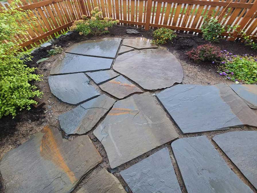 Flagstone adds a timeless, natural look to patios and walkways. We install each piece with precision for durability and style.